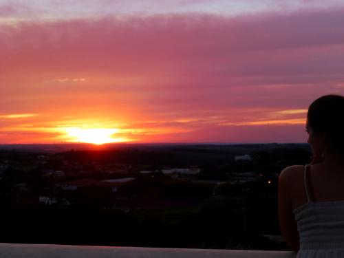 Ausflüge. Einmal einen abendlichen Trip zu einer hübschen Kapelle mit Aussicht über Botucatu. Unterwegs hielten wir an einem Restaurant und kauften eine Art fritierte Calzone. Super lecker, kann man aber nicht ohne ein schlechtes Gewissen essen.