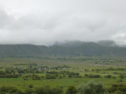 Tafi de Valle, deponierte mein Gepäck in einem Hostel und wanderte auf einen nahen Ausichtspunkt. Das Tal war total grün, aber dort war es auch unerwartet windig, kalt und regnerisch.
