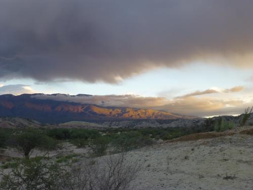 Hostel Amancay, das mir in Tucumán wärmstens empfohlen worden war, war ein einfaches, lehmverputztes Haus, in dem ich mich, auch Dank seines Besitzers und seiner Freundin, sofort wohl fühlte. Zum Frühstück gab es selbstgebackenes Brot und Marmelade, eine heiße Dusche gab es immer abends ab sieben Uhr, wenn der Ofen angefeuert wurde. Nach Amaicha wollte ich vor allem, um die Ruinen der berühmten Stadt der Quilmes-Indinaner zu besuchen. Der Hostelbesitzer Sebastián ist zufällig auch der Veranstalter dieser Touren, da aber am ersten Abend noch nicht genug Leute für eine Tour angemeldet waren, nahmen mich die beiden mit in die Wüste, die